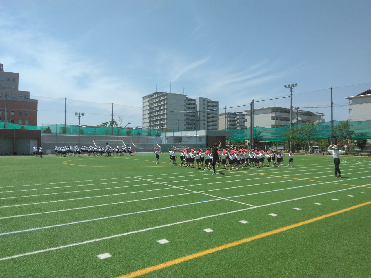 1年生は4学級で一緒に体育をしています。元気な様子でだいぶ学校にも慣れて着換えも早くできるようになっています。熱中症にならないように気を付けていきます。