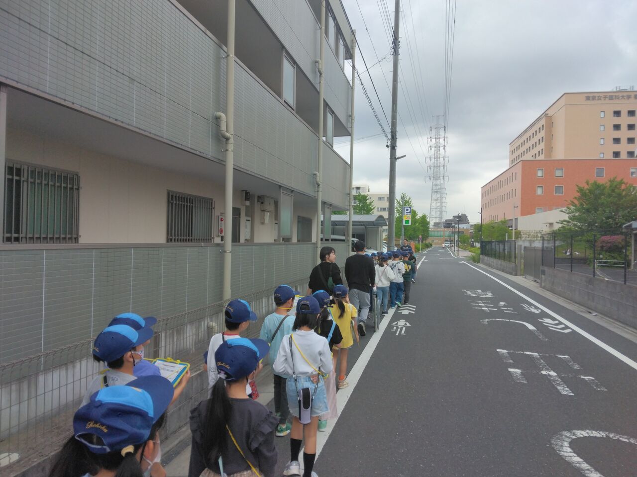 3年生が学校の周りに何があるが2度目の探検をしました。今回は学校の東側から北側にかけて歩きました。ここ⚪⚪君のお家だよ。あそこのスーパーにお母さんが勤めてるよ。といろいろ教えてくれました。