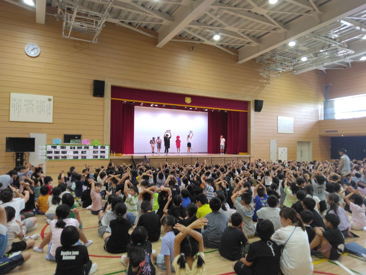 集会委員会が企画して、生活習慣やルールを劇をとおして伝える集会を行いました。とても楽しい内容で、歓声があがって盛り上がりました。