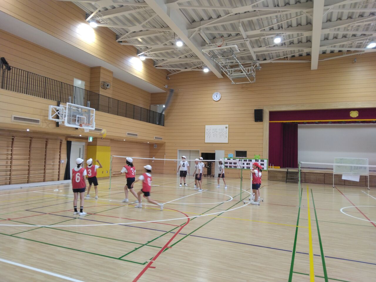 6年生がソフトバレーボールに取り組んでいました。柔らかいボールでバレーボールをするので、無理なく楽しめるスポーツです。