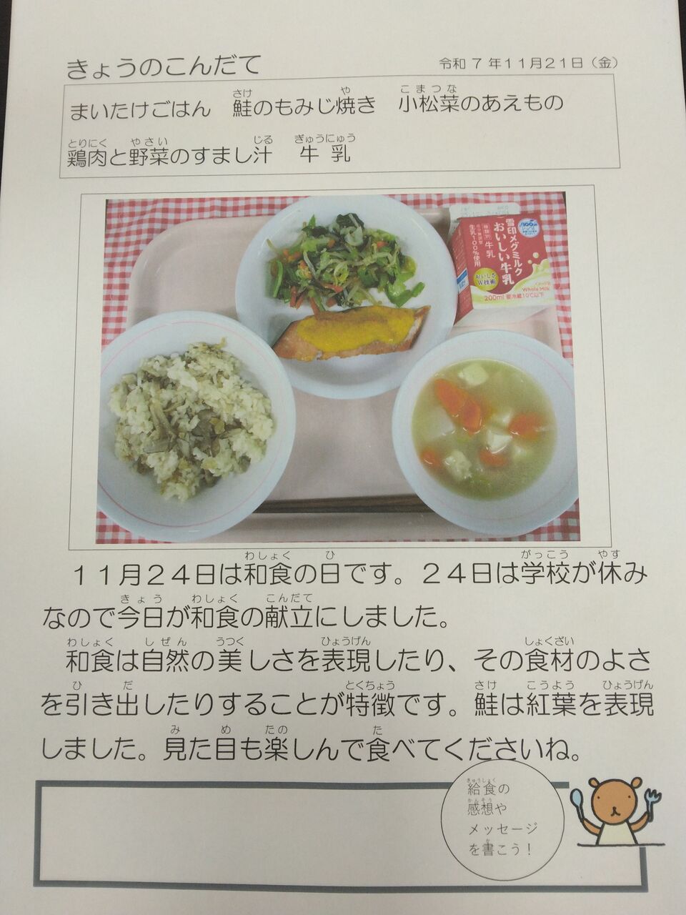 11/21今日の給食