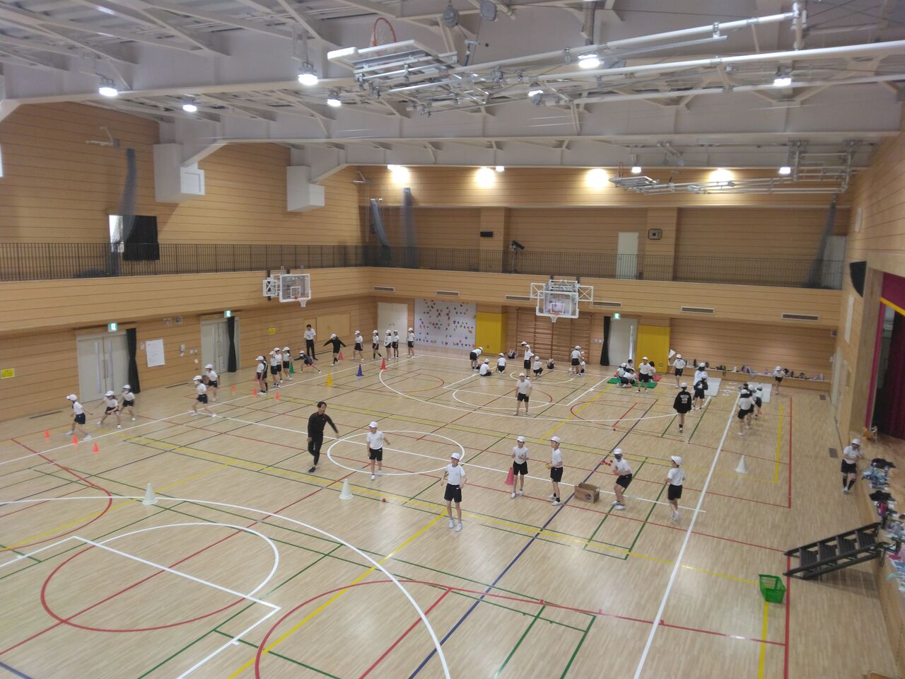 4年生が体育館で体つくりの運動をしました。投げる、柔軟性、瞬発力などを養う場面を設定して取り組みました。投げるでは、ポケモンキャラクターめがけていたのでより意欲を高めていました。