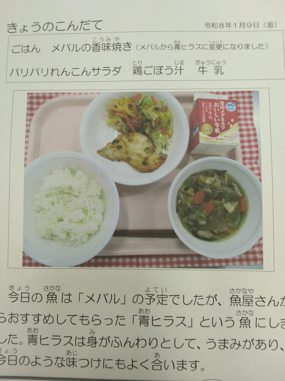 1/9今日の給食