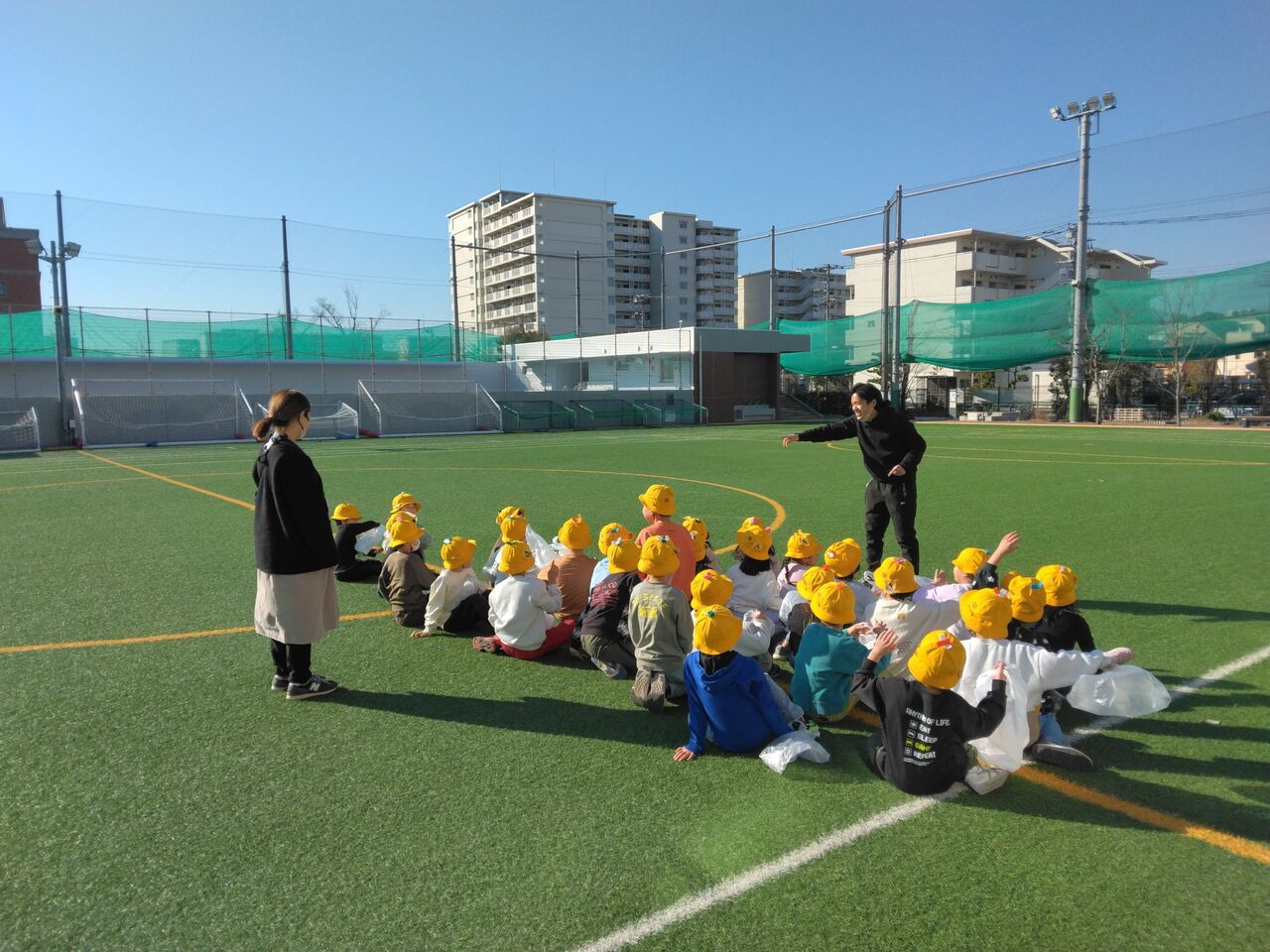 1年生が季節と仲良し冬、風と遊ぼうという単元の学習をしました。ビニール袋に風を入れて飛ばしながら風の勢いを感じていました。