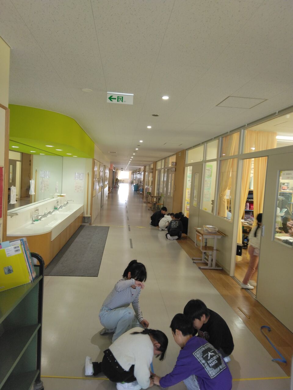 2年生が算数で長さの学習をしています!今回は1m=100cmを学びました。実際に教室の長さを測ったり廊下を測ったりしました。